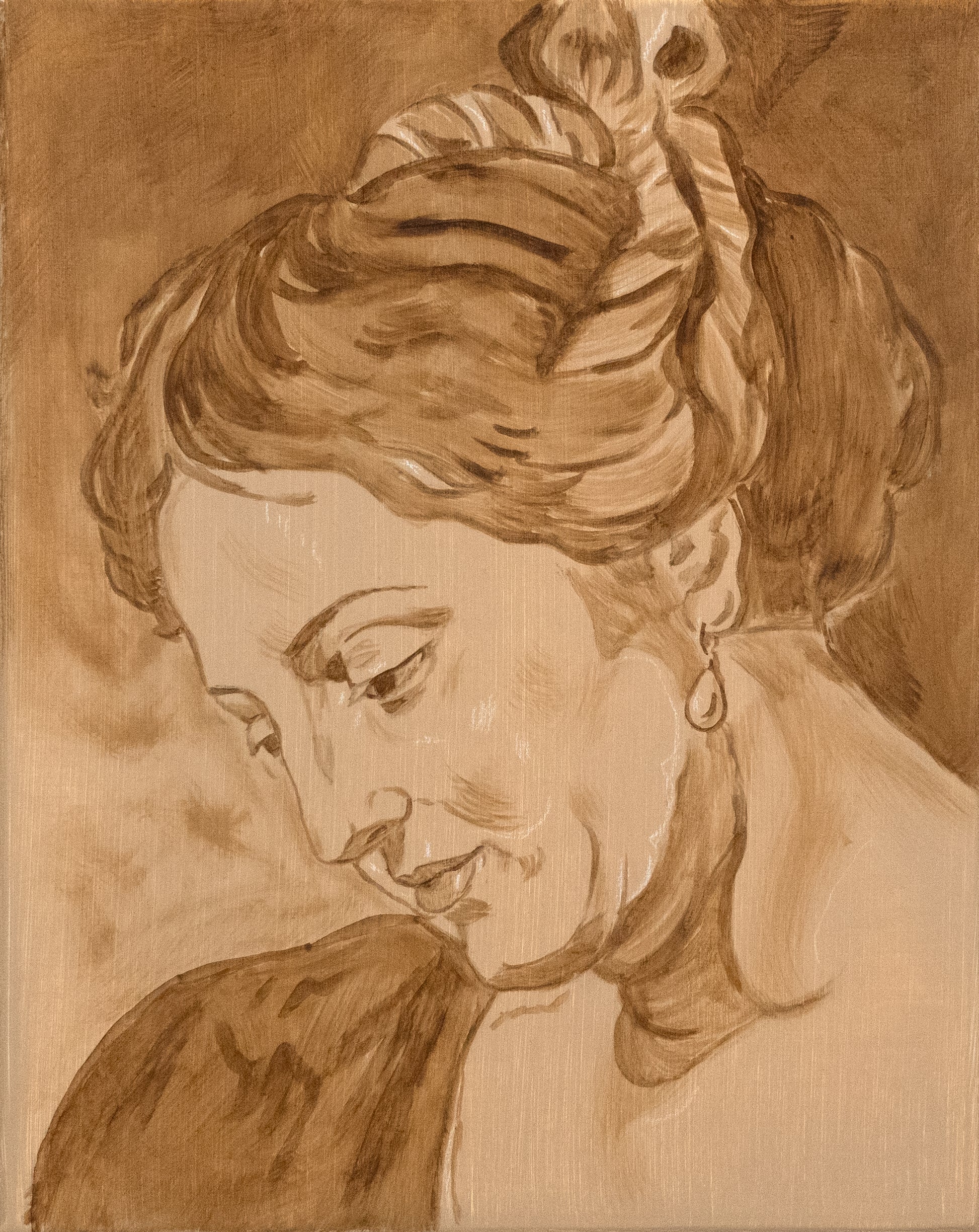 An earth toned, monochromatic portrait study of a mythological Peter Paul Rubens painting depicting Cleopatra.